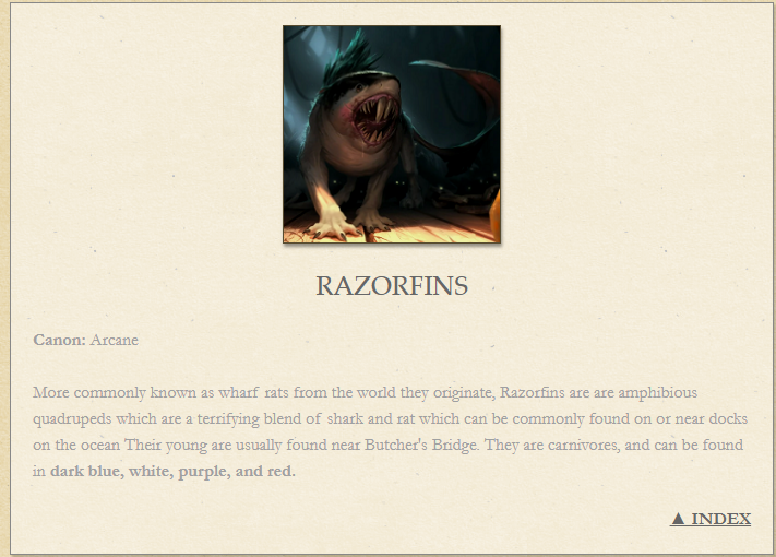 -Every few days he helps out at the Library with little things like restocking the shelves, helping people find stuff, and once in a blue moon manning the front desk if he's been given big enough puppy eyes about it. He's there more to organize than socialize so expect mild grumbling if you approach him.