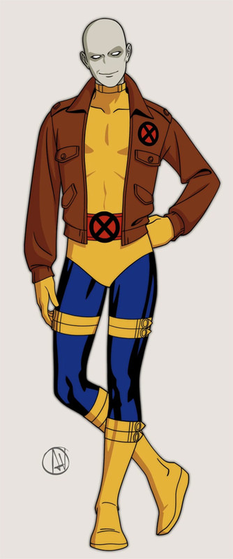 In Morph's natural appearance (the one they walk around as most of the time), Morph has off-white skin, eyes that are a solid white, and a completely hairless body. The form they prefer is on the slender side, sporting some visible muscle but overall more toned than super muscular. They're also seen wearing their superhero costume more often than not, and now Morph has the jacket to go along with it like in the picture.